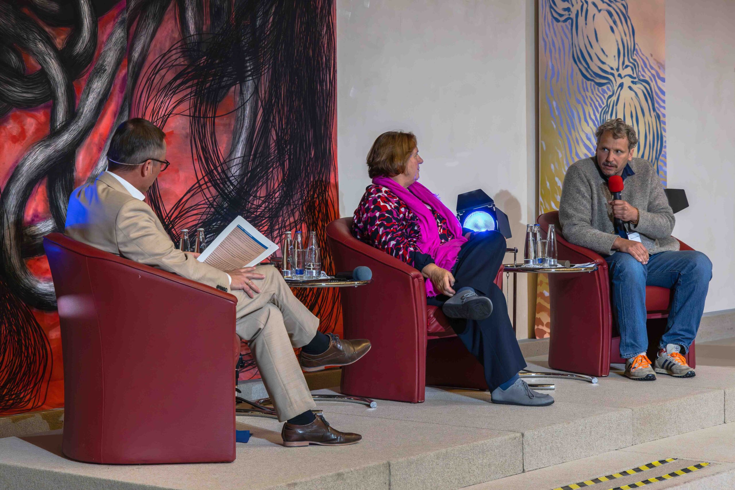 Etwa 300 Gäste sind der Einladung zu diesem neuen Format am Freitag, den 13. September 2024 gefolgt. Nach einem intensiven Nachmittag mit Gesprächsformaten rund um die Zukunft des Ehrenamts und des kirchlichen Engagements, stand am Abend das Thema „Demokratie braucht Bildung“ im Mittelpunkt. Dazu diskutierte Akademiedirektor Achim Budde auf dem Podium mit der Baden-Württembergischen Kultusministerin, Theresa Schopper, und dem Kultregisseur Marcus H. Rosenmüller.