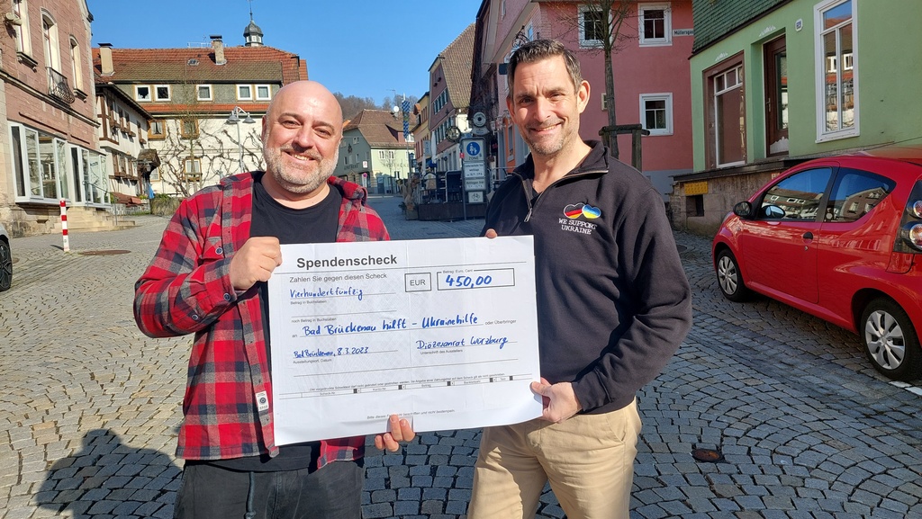 Das Geld hatten die Delegierten des Diözesanrats der Katholiken bei ihrer Frühjahrsvollversammlung am ersten Märzwochenende im Würzburger Exerzitienhaus Himmelspforten gesammelt. Für Sauer ist es ein guter Brauch, die Gottesdienstkollekten der Vollversammlungen an ein Hilfsprojekt weiterzugeben, das an die Thematik der jeweiligen Vollversammlung anknüpft. „Ich bin unserem Diözesanratsvorsitzenden Dr. Michael Wolf sehr dankbar, dass er in seinem ‚Bericht zur Lage‘ auch auf den zweiten Jahrestag des russischen Angriffs auf die Ukraine einging“, berichtete Sauer. Wolf stellte darin fest, dass der Westen der Ukraine Hilfe zugesagt habe. Anfangs sei diese auch geleistet worden, lasse nun aber anscheinend immer weiter nach. Sauer schlug daraufhin vor, den Verein „Bad Brückenau hilft“ zu unterstützen. Dieser organisierte in den vergangenen zwei Jahren 19 Hilfstransporte von Sachspenden wie Medikamente, Krankenhausausstattung, Lebensmittel, Schulmaterial oder jüngst auch ein Ultraschallgerät, einen Caddy und zwei Rettungswagen. Der Verein ist nach eigenen Angaben mit Krankenhäusern und Schulen in der Ukraine im engen Kontakt und prüfe immer wieder neu, was gerade dringend benötigt wird. Die Spendengüter werden über Aufrufe gesammelt oder von Spendengeldern gekauft und anschließend mit Transportern von den Vereinsmitgliedern selbst in die Ukraine gefahren. So sei sichergestellt, dass die Hilfe tatsächlich dort ankomme, wo sie gebraucht werde. Auch habe man schon an der ukrainisch-polnischen Grenze Lebensmittel, Kleidung und Schlafsäcke an Menschen ausgegeben, die ihre ukrainische Heimat verlassen mussten. „Das hier geleistete ehrenamtliche Engagement ist einfach großartig und verdient unsere Unterstützung“, erklärte Sauer. Er ziehe seinen Hut vor dem Herzblut und dem Einsatz der hier engagierten Menschen. „Bad Brückenau hilft“ sei ein tolles Beispiel, wie Menschen die Not anderer wahrnehmen, sich für andere engagieren und die Welt so ein bisschen besser machen. Ausführliche Informationen über „Bad Brückenau hilft“ auf der Homepage.
