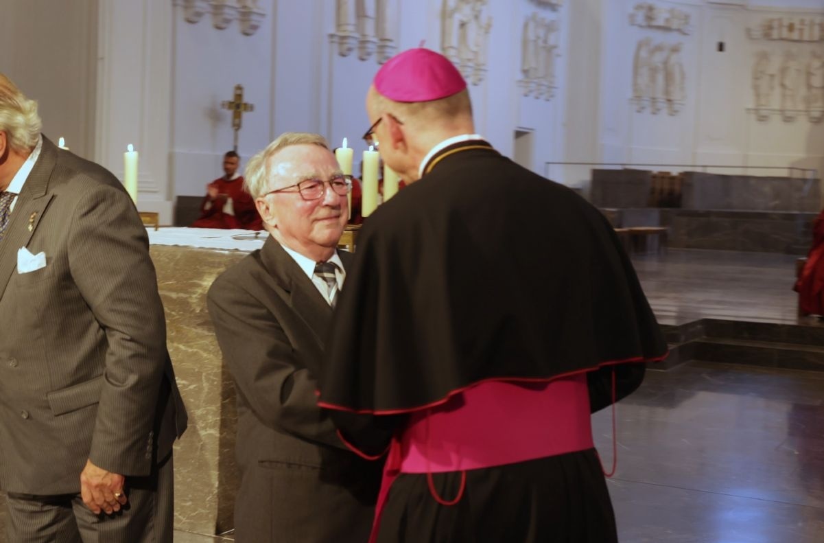 Für eine lebenswerte fränkische Heimat setzt sich Professor Dr. Klaus Reder seit Jahrzehnten ein. In mehr als 25 Jahren habe er durch die Schärfung des Bewusstseins sowohl für christliche Traditionen als auch für das jüdische Kulturerbe Frankens einen profilierten Heimatbegriff entwickelt, der selbstbewusste Rückschau mit Verantwortung für die Zukunft verbinde. Zudem habe Reder sich in vielfältigen kirchlichen Verbänden und Gremien engagiert, unter anderem fast vier Jahrzehnte im Diözesanrat der Katholiken. Von seinem Einsatz für die Heimat zeuge aber nicht zuletzt sein Wirken in der Gemeinschaft Sant‘Egidio seit 1983. „Als langjähriges Mitglied des Würzburger Ortsvorstands hat er nicht zuletzt durch erfolgreiches Fundraising die wertvolle Arbeit der Gemeinschaft für Menschen in Notsituationen mitgetragen und gefördert.“ Überregional sei er zudem 16 Jahre Vertreter seiner Gemeinschaft beim ZdK sowie ein Jahrzehnt lang Mitglied des Weltrats von Sant'Egidio gewesen. „Auf höchster Ebene war er hauptverantwortlich für die deutsche Beteiligung an den Weltfriedenstreffen der Gemeinschaft, zuletzt 2024 in Berlin.“ Reder habe gezeigt, was lebendige Kulturpflege sein könne. Seine wissenschaftlich stets fundierte Auseinandersetzung mit der Vergangenheit habe sich nie im Rückblick erschöpft, sondern sei immer Ausgangspunkt für die Gestaltung der Zukunft gewesen. „Die Vollendung der Bischofsreihe in der Germania sacra – übrigens als einziges deutsches Bistum – ist wesentlich Ihrer Förderung zu verdanken“, betonte Bischof Jung.