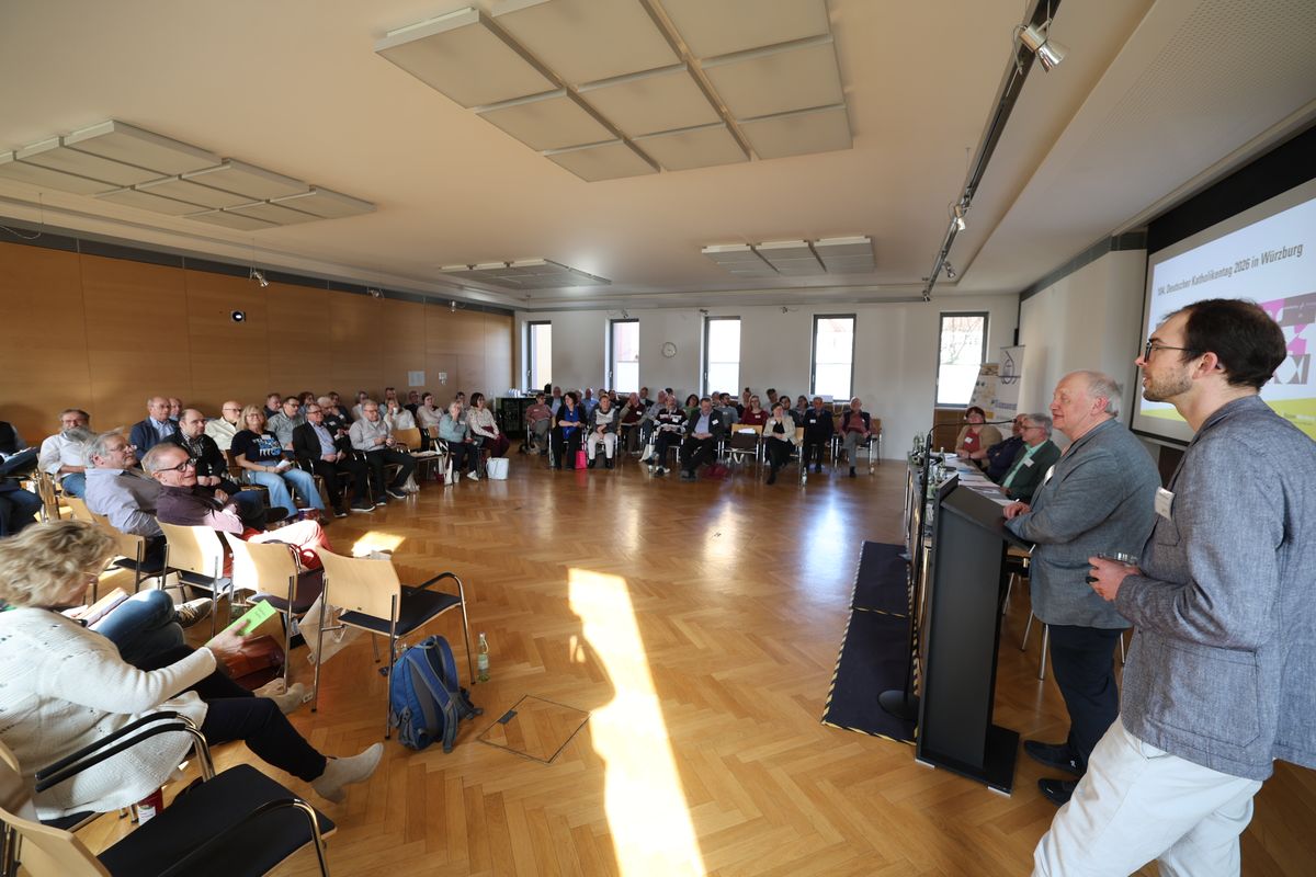 Domkapitular Albin Krämer, Bischofsvikar für den 104. Deutschen Katholikentag, und sein Referent Dominik Großmann warben für die bevorstehende Großveranstaltung vom 13. bis zum 17. Mai in Würzburg. Das Programm sei seit 3. März veröffentlicht, jetzt könne sich jeder online oder in der Katholikentags-App über die Vielzahl der über 900 Veranstaltungen informieren und dann bis zum 15. März verbilligte Karten erwerben. „Kostenlos und ohne Ticket können Interessierte alle Veranstaltungen besuchen, die im Freien stattfinden. Dazu gehört der Abend der Begegnung am Mittwoch, bei den sich die neun Dekanate in der Innenstadt mit Kultur und Kulinarik vorstellen, aber auch die beiden Gottesdienste auf dem Residenzplatz an Christi Himmelfahrt und zum Abschluss am Sonntag“, betonte Krämer. Nähere Informationen, auch zu den Zuschüssen für Busse, die aus den Pastoralen Räumen zum Katholikentag nach Würzburg fahren, im Internet unter katholikentag.bistum-wuerzburg.de.