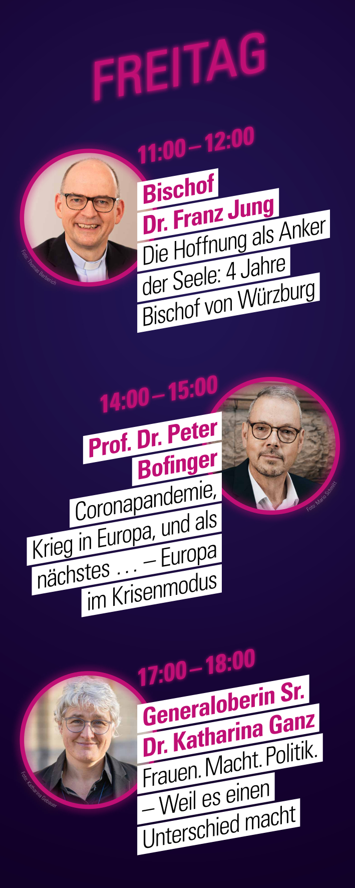 Das Motto des Würzburger Bistumsstands auf dem Katholikentag 2022 in Stuttgart lautet „Wir haben etwas zu sagen!“. Zu verschiedenen Zeiten stehen dort Gesprächspartnerinnen und -partner zur Verfügung, die jeweils ein bestimmtes Thema aufgreifen. Der Stand ist auf der Kirchenmeile von Donnerstag, 26. Mai bis Samstag, 28. Mai zu finden. Die genaue Standortnummer lautet: 2-SG-25